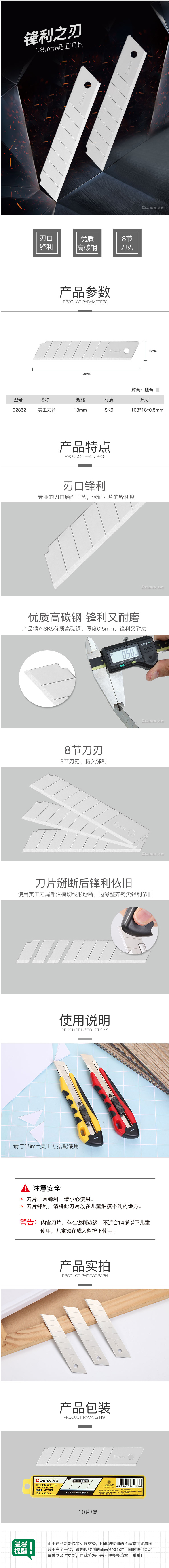 商品名称:齐心 B2852 大号8节SK5标准美工刀片 10片/盒
