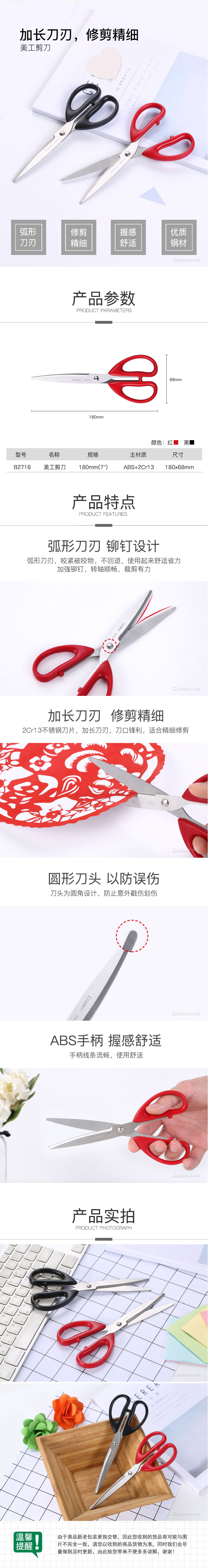 商品名称:齐心 B2716 加长刀刃美工剪刀 180mm