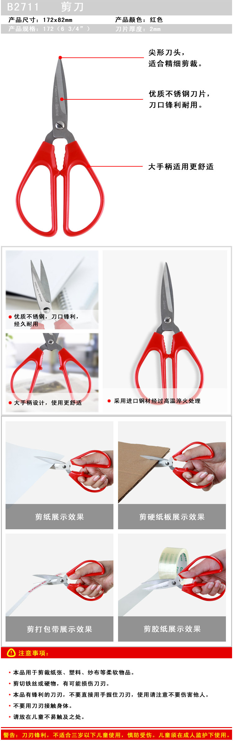 商品名称:齐心 B2711 中号大手柄剪刀 172mm