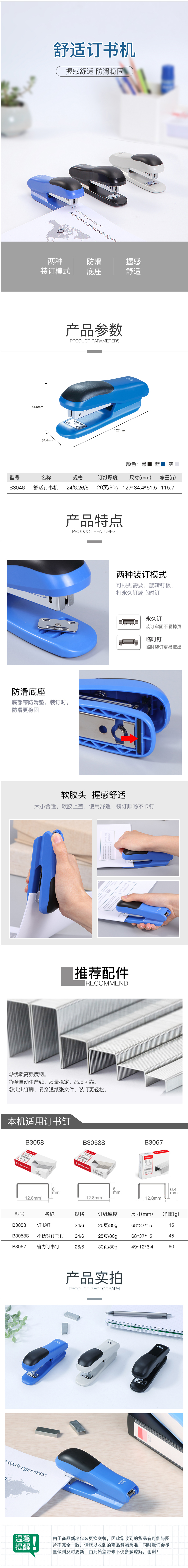 商品名称:齐心 B3046 舒适订书机 12#