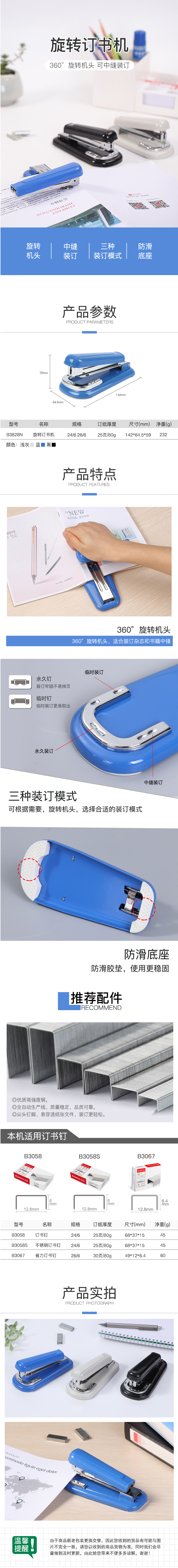 商品名称:齐心 B3828N 旋转订书机 12#