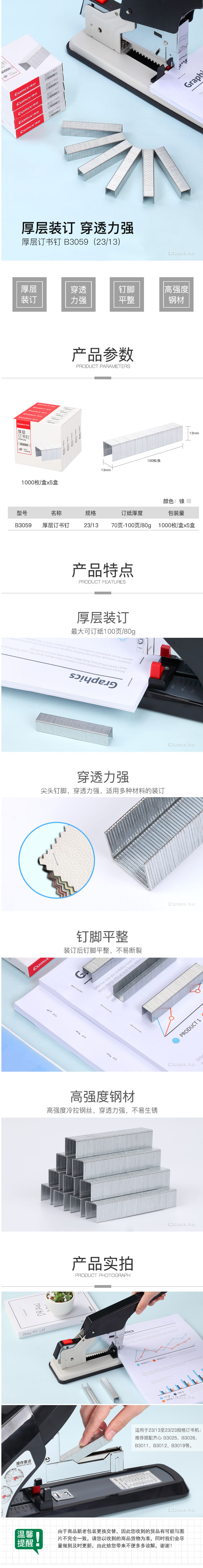 商品名称:齐心 B3059 厚层订书钉(23/13)100页 1000枚/盒
