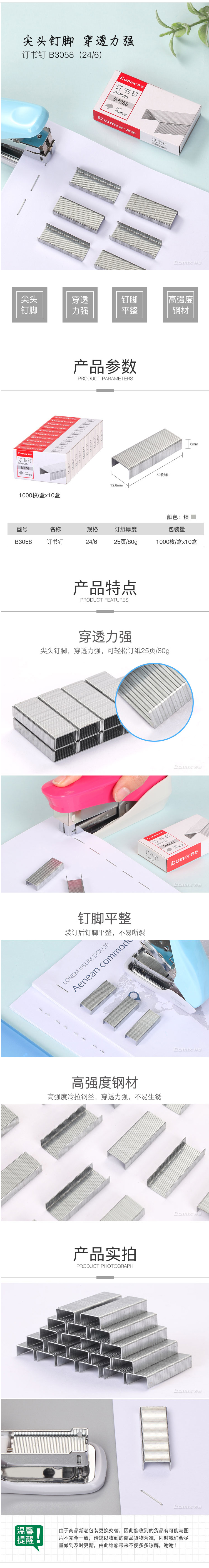 商品名称:齐心 B3058 优质高强度订书钉/统一钉/标准钉 24/6