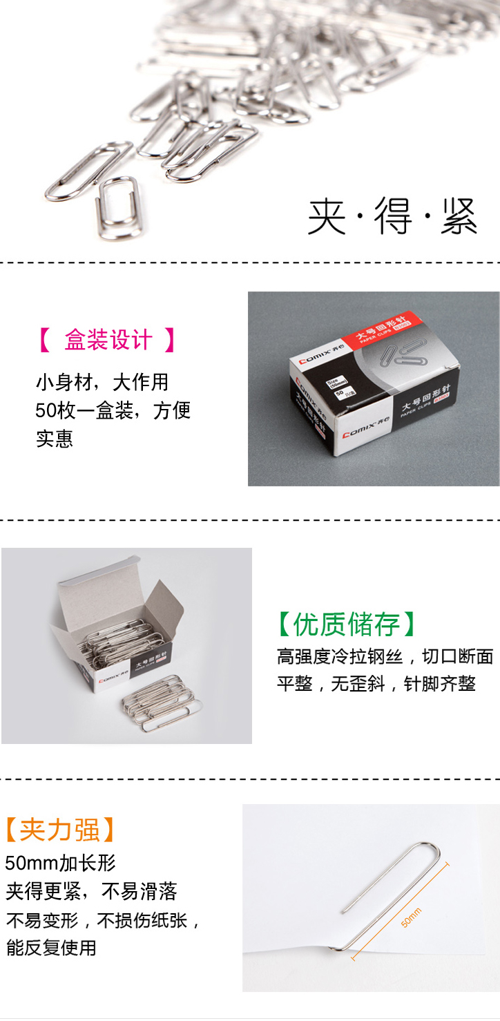 商品名称:齐心 B3503 大号回形针 50mm