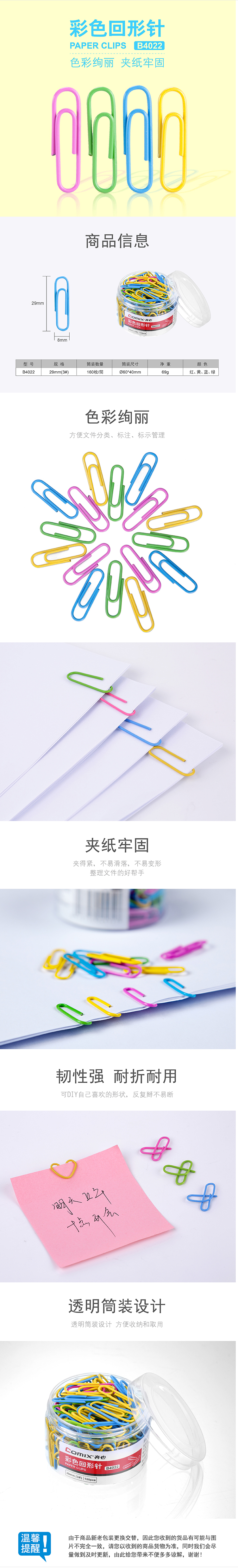 商品名称:齐心 B4022 彩色回形针 (3#29mm)