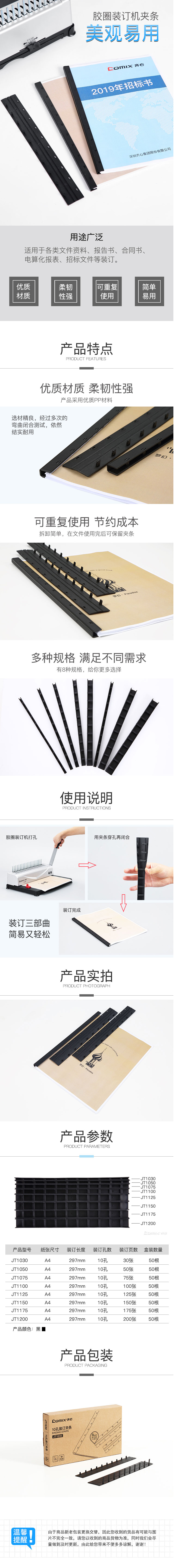 商品名称:齐心 JT1050 装订夹条 5mm宽 1SET=50PCS