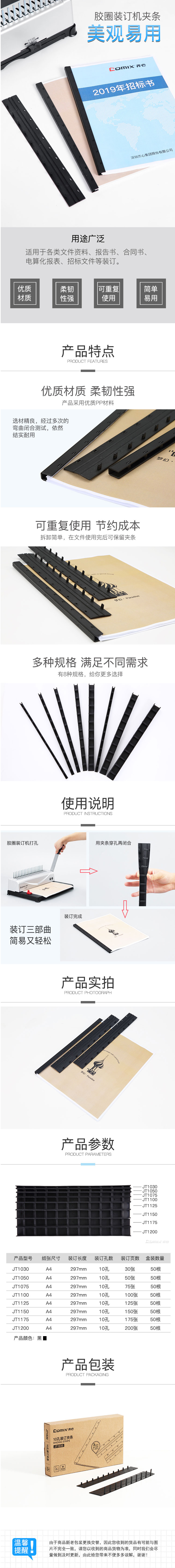 商品名称:齐心 JT1150 装订夹条 15mm宽 1SET=50PCS