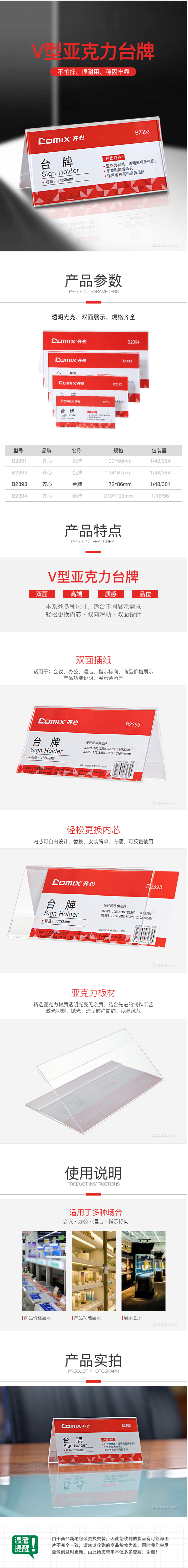 > 齐心 B2393 三角会议台牌 172*86