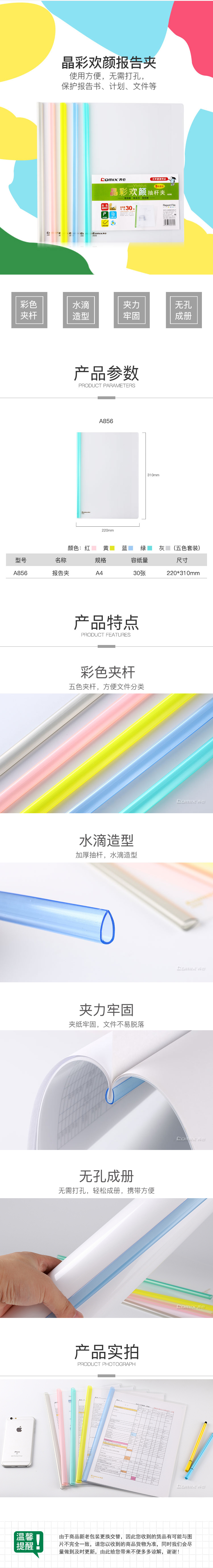 商品名称:齐心 A856 晶彩欢颜报告夹 A4 抽杆式抽杆夹 30张 五色套装