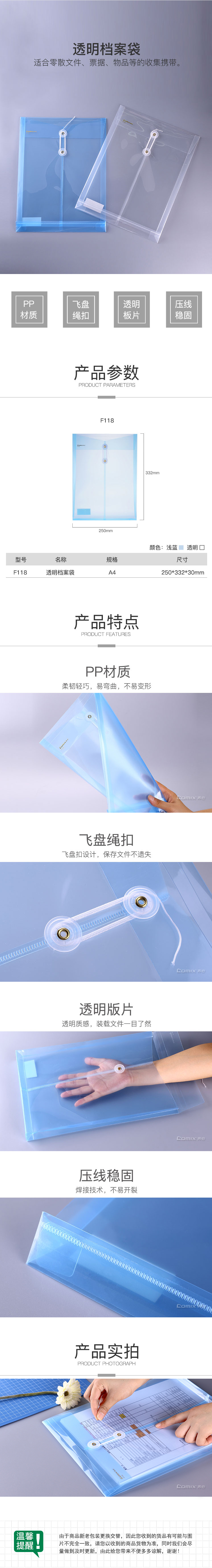 商品名称:齐心 F118 办公必备透明档案袋 A4 绳扣式