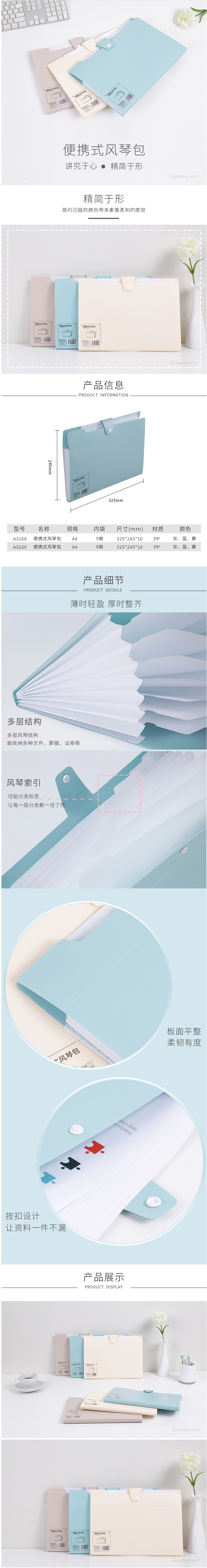 商品名称:齐心 A3169 A4 便携式风琴包8袋