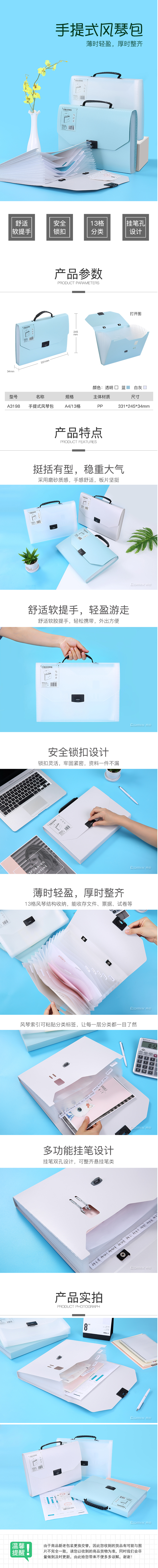 商品名称:齐心 A3198 手挽13格风琴包 A4