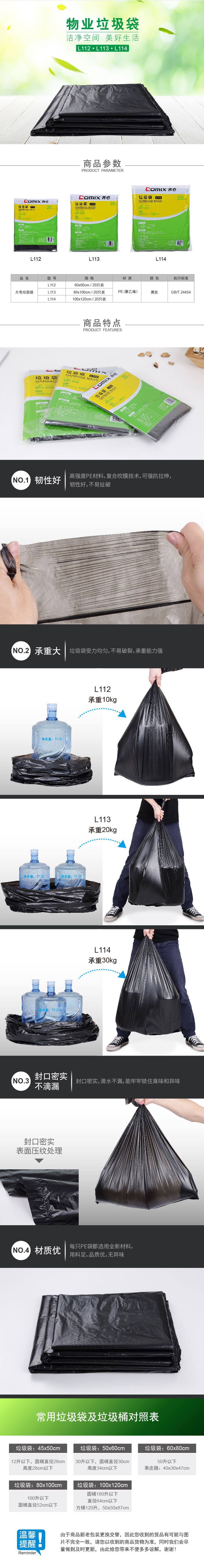 商品名称:齐心 L112 大号垃圾袋60*80cm 20个装