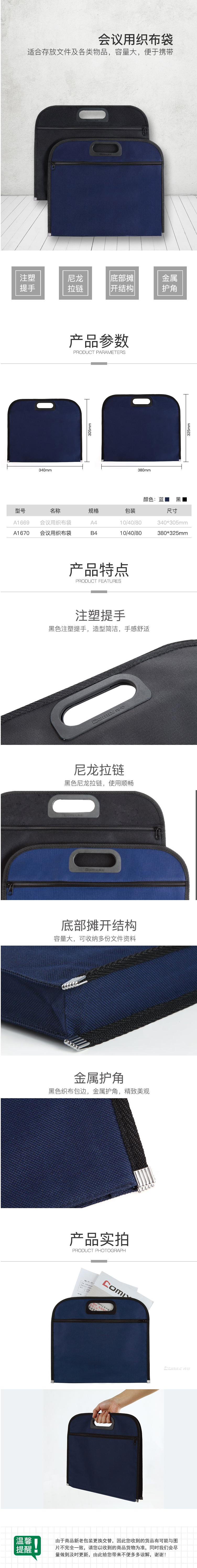 商品名称:齐心 A1670 会议专用织布袋 B4双袋