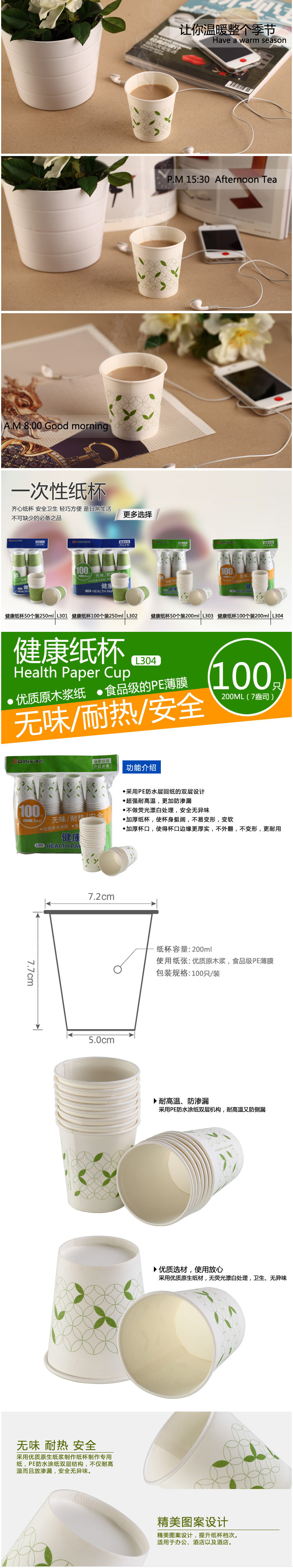 齐心 L304 健康纸杯100个装7安