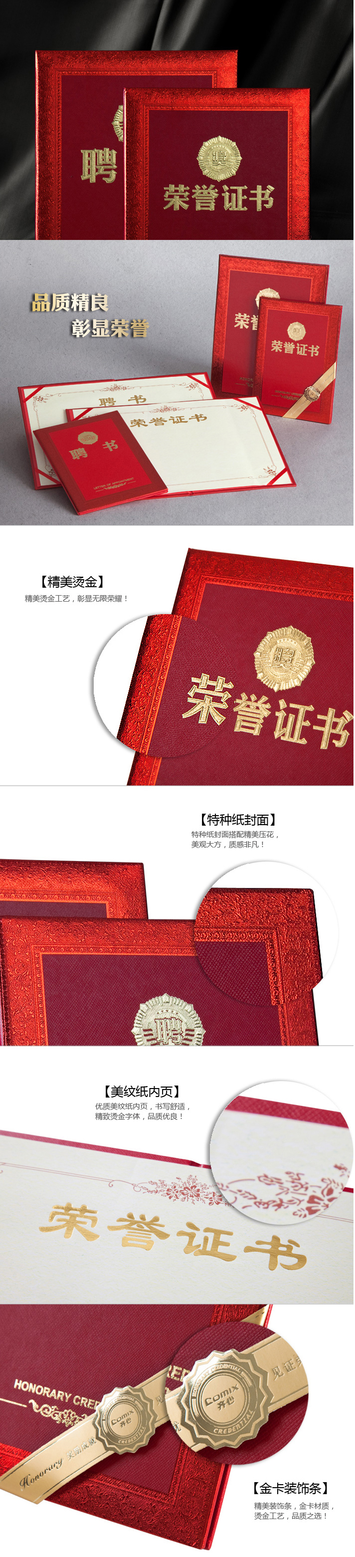 商品名称:齐心 C5106 特种纸荣誉聘书12K