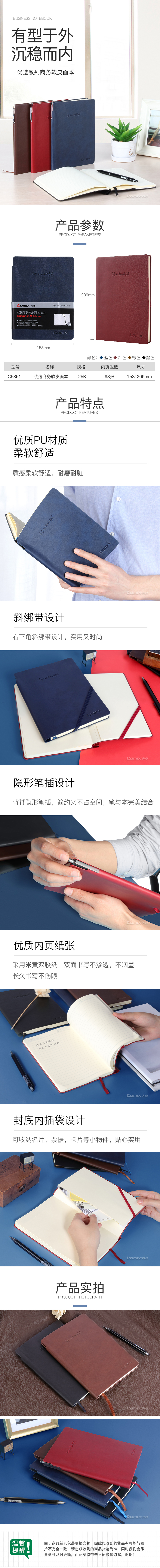 商品名称:齐心 C5851 优选系列软皮面本 A5 98张