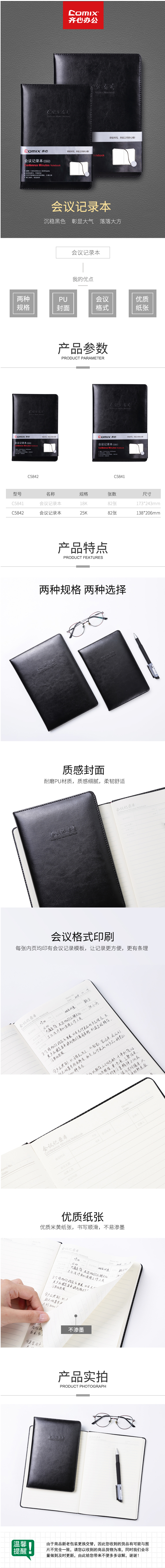 商品名称:齐心 C5842 会议记录本 25K 80张笔记本