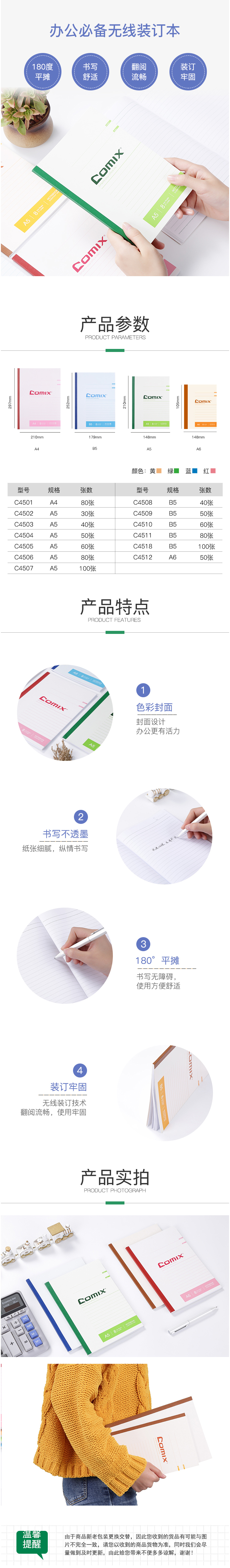 商品名称:齐心 C4509 办公必备无线装订本 B5 50张笔记本软抄本软面抄
