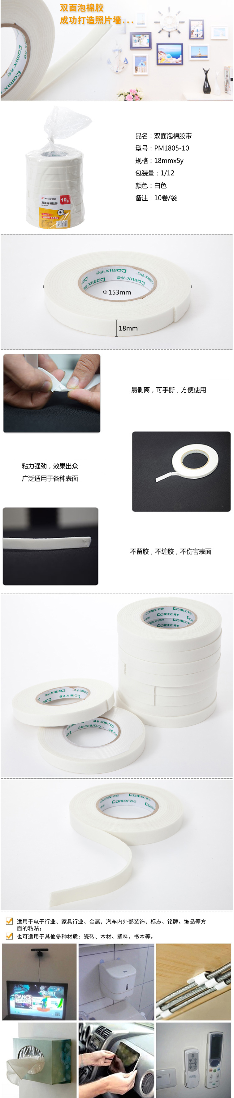 商品名称:齐心 PM1805-10 双面泡棉胶带 10卷/筒 泡沫胶