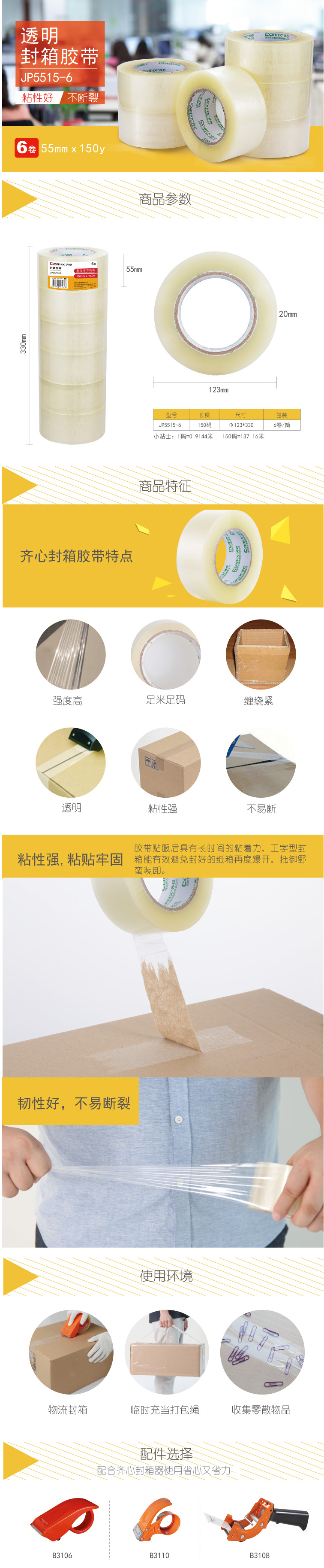 商品名称:齐心 JP5515-6 封箱胶带 6卷装