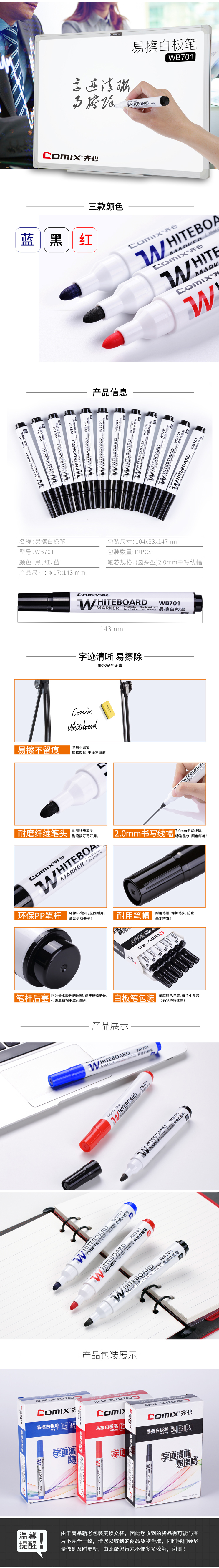 商品名称:齐心 WB701 易擦白板笔