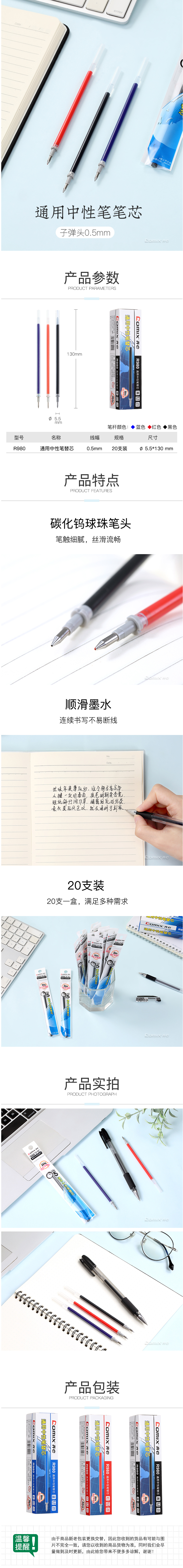 商品名称:齐心 R980 通用中性笔芯替芯0.5mm