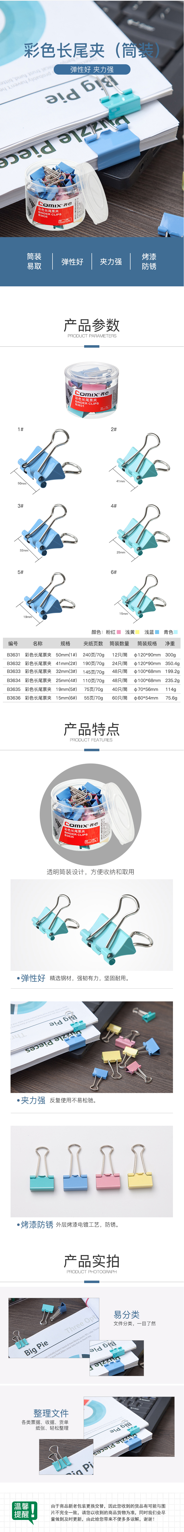 商品名称:齐心 B3631长尾夹票夹 1# 50mm 12只/筒