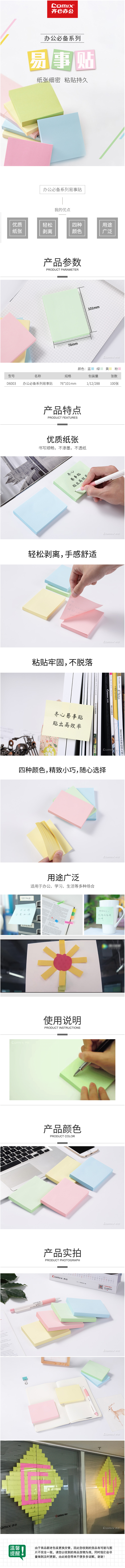 商品名称:齐心 D6003 办公必备系列易事贴 3X4英寸告示贴
