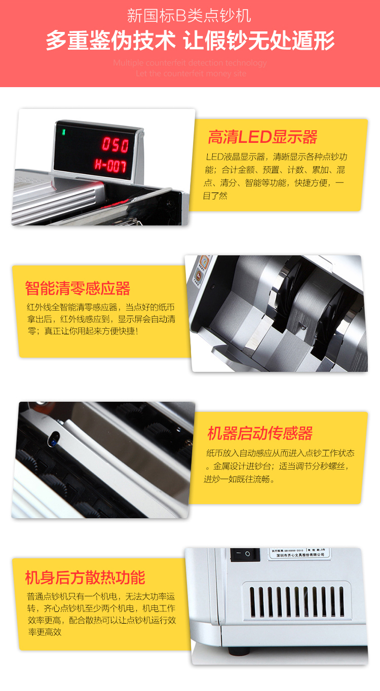 商品名称:齐心 JBYD-6168B 全智能红外B级点验钞机