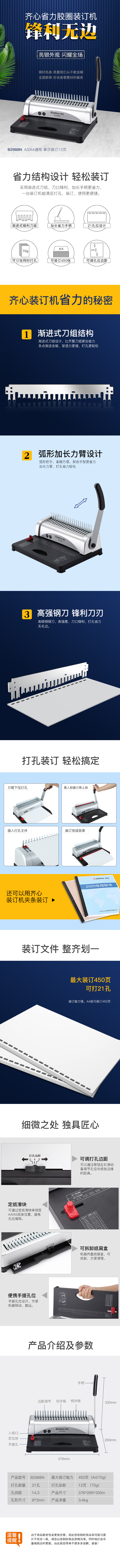 商品名称:齐心 B2988N 高效省力胶圈装订机