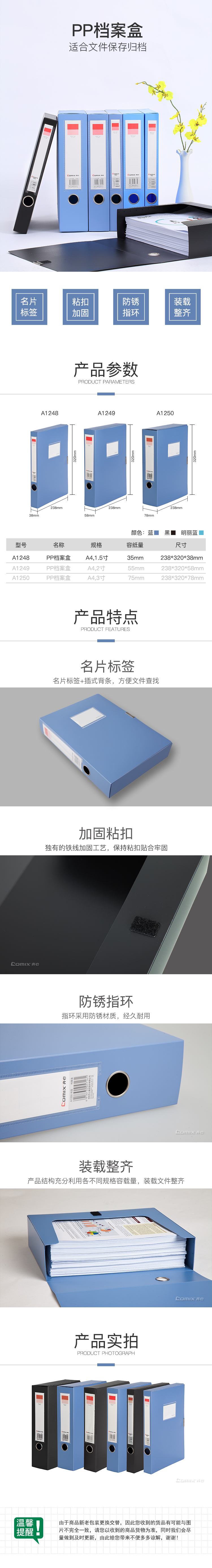 商品名称:齐心 A1249 超省钱PP档案盒 A4 55MM