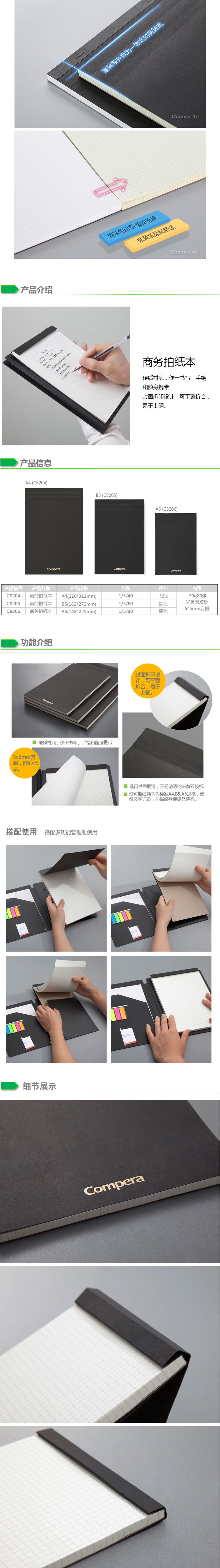 商品名称:齐心 C8204 Compera 商务拍纸本 A4 80张