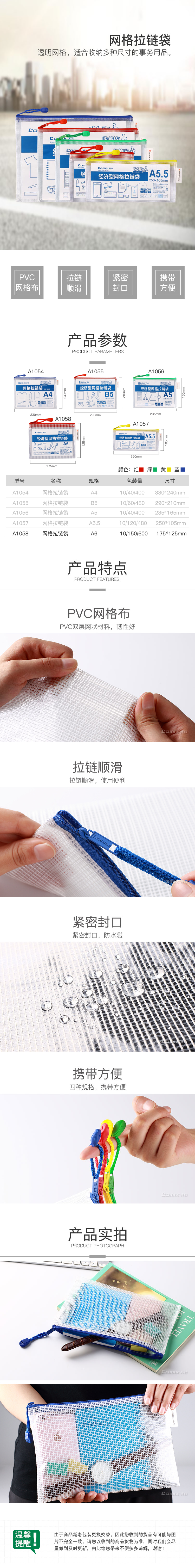 商品名称:齐心 A1058 经济型网格拉链袋 10PCS/套 A6