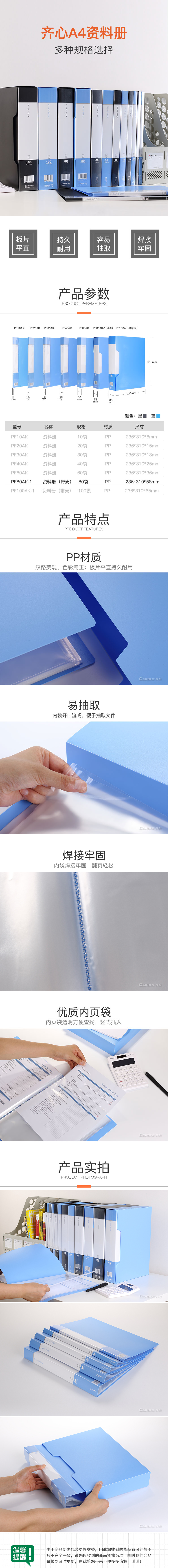 商品名称:齐心 PF80AK-1 超省钱大容量资料册 A4 80袋外壳