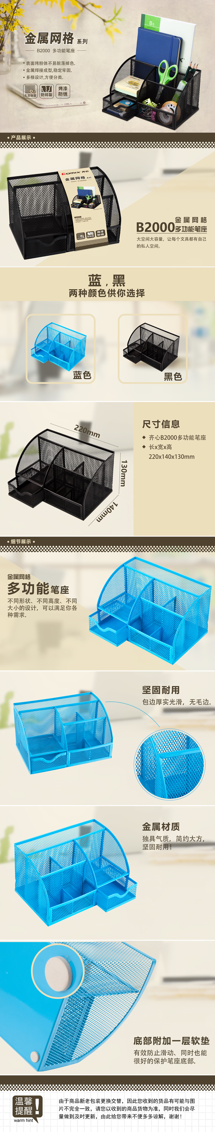 商品名称:齐心 B2000 金属网格多功能笔座