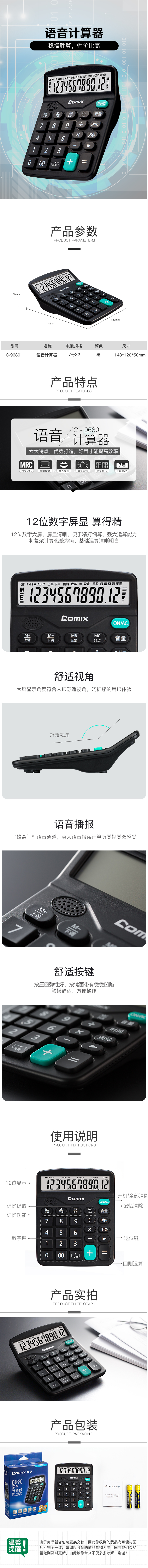商品名称:齐心 C-9680 语音计算器 灰色