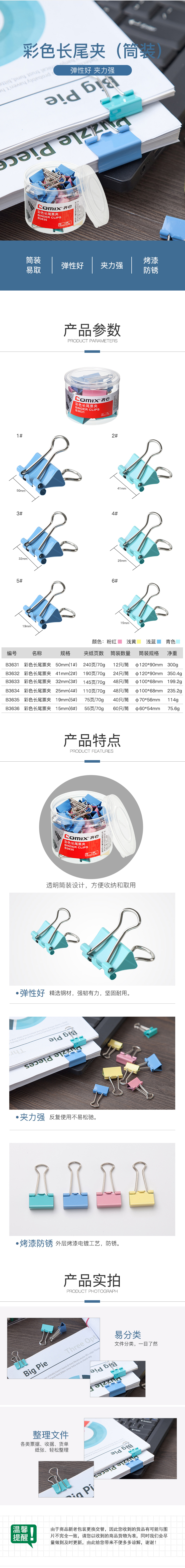 商品名称:齐心 B3636长尾夹票夹 6# 15mm 60只/筒